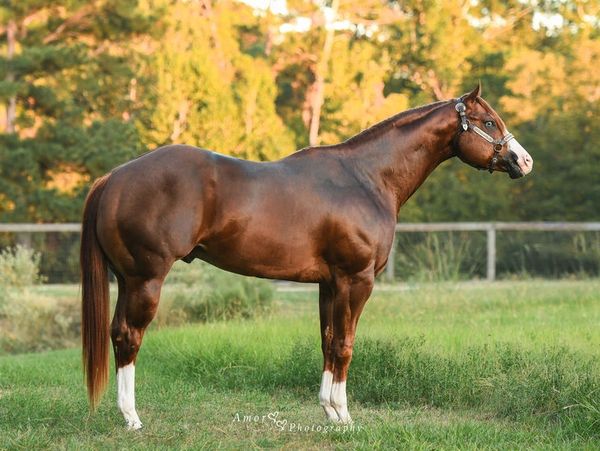 Multiple World Champion, MMR Jinx On Me has proven himself in the show pen and has proven himself as a sire- as his sire did. Jinx is a producer of Futurity Winners and Money Earners. He is a high precentage color producer with SW1 & W20 Carrier (Color Genes). PSSM P1/N (non symptomatic), Neg on other 5 panel.